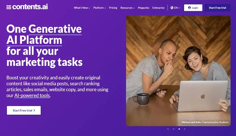 Contents.ai je nástroj pro psaní s umělou inteligencí a zázračný pomocník, který vám pomůže vytvářet výkonný obsah. Je to rychlý, přesný a efektivní nástroj pro blogery, marketéry a majitele firem.