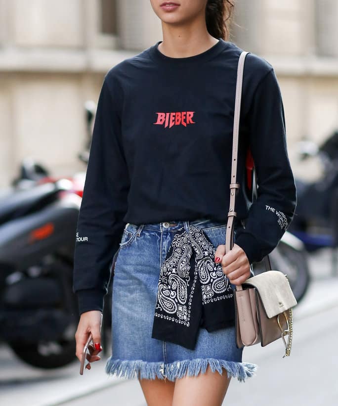 Pořád vládnou trička v černé a bílé barvě volného střihu a bez rukávu s velkým nápisem. Dokonce i černé tričko s černými rozšířenými kalhotami působí zajímavě, taky klasická kombinace bílé tričko a černé kalhoty nebo dokonce krátká černá sukně je velmi sexy.