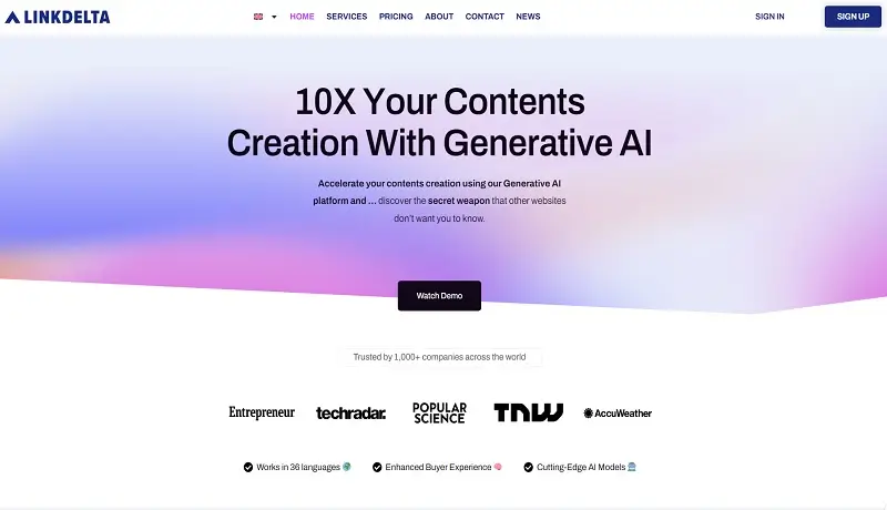 Linkdelta je špičkové řešení řízené umělou inteligencí, jehož cílem je ulehčit vám tuto zátěž a zefektivnit vaše pracovní postupy. Tento geniální nástroj je všestranná a uživatelsky přívětivá platforma umělé inteligence pečlivě navržená tak, aby urychlila a optimalizovala vaše úsilí při tvorbě obsahu, ať už jste majitel firmy, marketér nebo tvůrce obsahu.