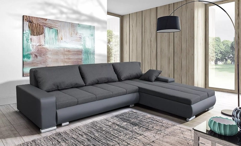 Rozkládací sedací souprava rohová s úložným prostorem LUMIO šedá – černá