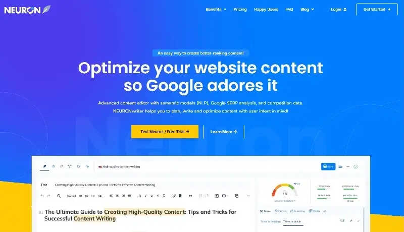 Vyzkoušejte si sílu psaní s umělou inteligencí s nástrojem NeuronWriter ještě dnes. Přihlaste se k bezplatné zkušební verzi a odhalte svět možností pro své psaní.