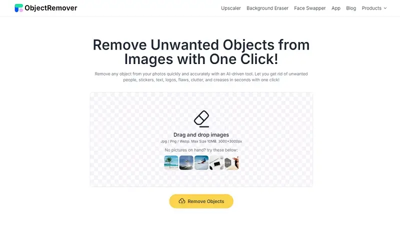 ObjectRemover je editační nástroj poháněný umělou inteligencí, který vám umožní snadno odstranit nežádoucí prvky z fotografií. Obecně umožňuje odstranit ze snímků osoby, auta, výrobky, domácí zvířata, rostliny, nepořádek, text, a dokonce i celá pozadí.