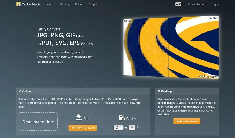 Vector Magic je software, který převádí bitmapové obrázky jako JPG, PNG, GIF a BMP do vektorových formátů včetně SVG, EPS, PDF, AI a DXF. Online verze umožňuje rychlý převod metodou drag-and-drop, zatímco verze pro stolní počítače nabízí plnou podporu průhlednosti. Read More