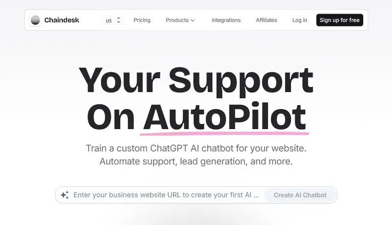 Chaindesk je nástroj pro tvorbu chatbotů s umělou inteligencí bez nutnosti kódování, který firmám umožňuje automatizovat zákaznickou podporu, zefektivnit generování potenciálních zákazníků a optimalizovat komunikační procesy.