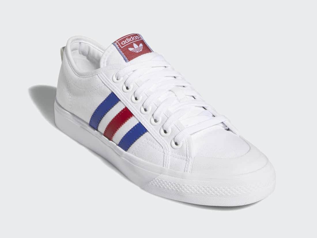 Společnost adidas Originals připravila další skvělý model adidas Nizza, který je v designovém motivu „White Scarlet Blue“. Nejnovější kolekce obuvi pro každodenní nošení je v barevné kombinaci bílé, červené a modré barvy.