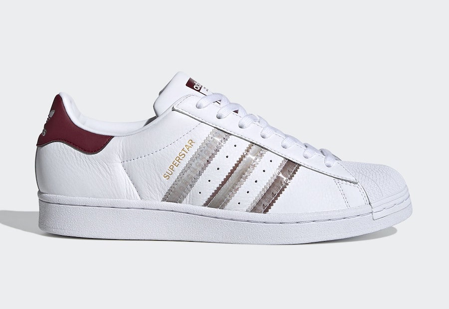 adidas Superstar „Holographic Three Stripes“ Cloud White/Collegiate Burgundy FX4419