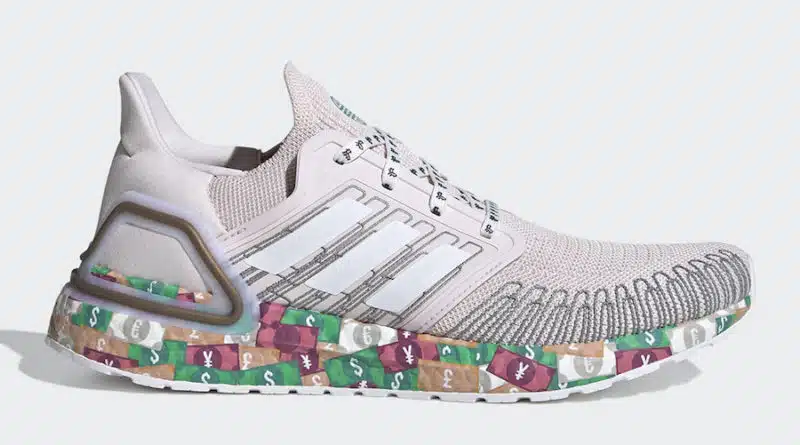 Společnost adidas Originals se chystá uvést na trh zcela nový model Ultra Boost 2020, který přichází s koláží měn pokrývajících mezipodešev Boost. Nové ztvárnění tenisek je doslova o penězích, které pokrývají celou barevnou mezipodešev symboly různých měn z celého světa.