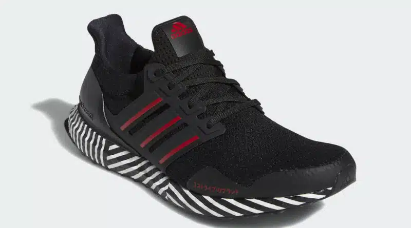Pohodlná gumová podrážka Boost je v černé a bílé barvě, a zespodu je podešev v černé barvě. Běžecké tenisky adidas Ultra Boost Black Scarlet budou k dispozici u vybraných prodejců během července.