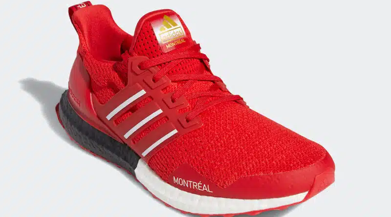 Pohodlná gumová podrážka Boost je v bílé a černé barvě, a zespodu je podešev v červené barvě. Běžecké tenisky adidas Ultra Boost DNA Montreal Scarlet budou k dispozici u vybraných prodejců během června.