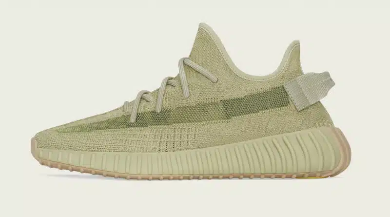 Odpružená podrážka s designovým žebrováním je v zelené barvě, kdy zespodu je v barvě růžové s prvky v bílé a žluté barvě. Zajímavé tenisky adidas Yeezy Boost 350 V2 Sulfur budou k dispozici u vybraných prodejců začátkem května.