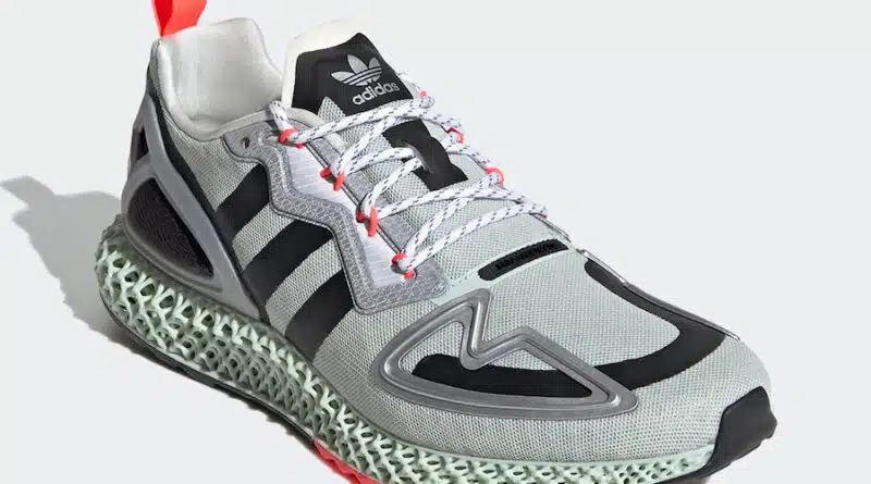 Pohodlná mezipodešev adidas 4D je v jemně zelené barvě a gumová podešev v černé a červené barvě. Nízké běžecké tenisky adidas ZX 2K 4D Signal Pink budou k dispozici u vybraných prodejců během července.