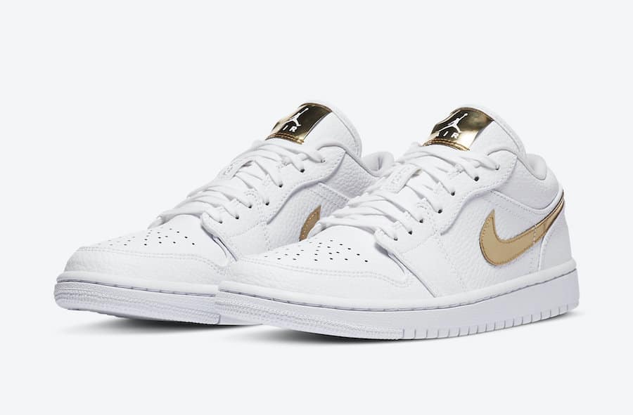 Značka Jordan připravila další kolekci nízkých tenisek řady Air Jordan 1 Low, která bude vydaná v designovém tématu „Metallic Gold“. Nová kolekce kožené obuvi je v zajímavé barevné kombinaci bílé a zlaté barvy.