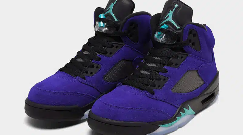 Značka Jordan se připravuje na 30-té výročí modelu Air Jordan 5, který bude vydaný v designovém tématu „Alternate Grape“. Nejnovější kolekce basketbalové obuvi bude v barevné kombinaci bílé, černé, fialové, šedé a zelené barvy.