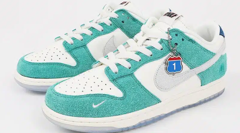 Nike Sportswear a Kasina streetwear label připravili další kolekci retro modelu Nike Dunk Low, který je v designovém tématu „Neptune Green“. Kolekce nízké obuvi je v barevné kombinaci bílé, černé, šedé, zelené a modré barvy.