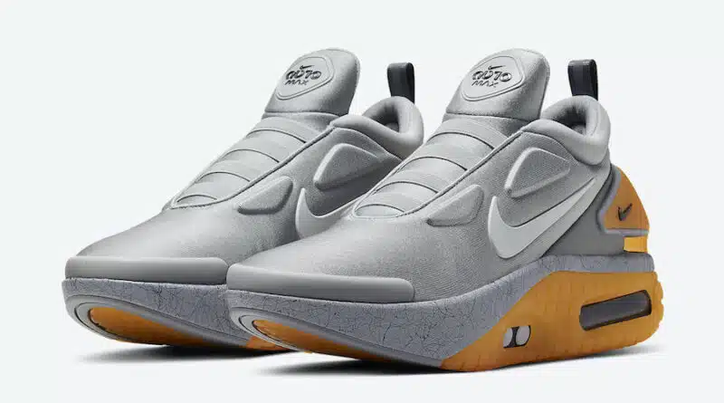 Pohodlná podrážka s technologii Adapt, která zajišťuje maximální odpružení je v kombinaci šedé a žluté barvy. Sportovní tenisky Nike Adapt Auto Max Motherboard budou k dispozici u vybraných prodejců během května.