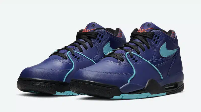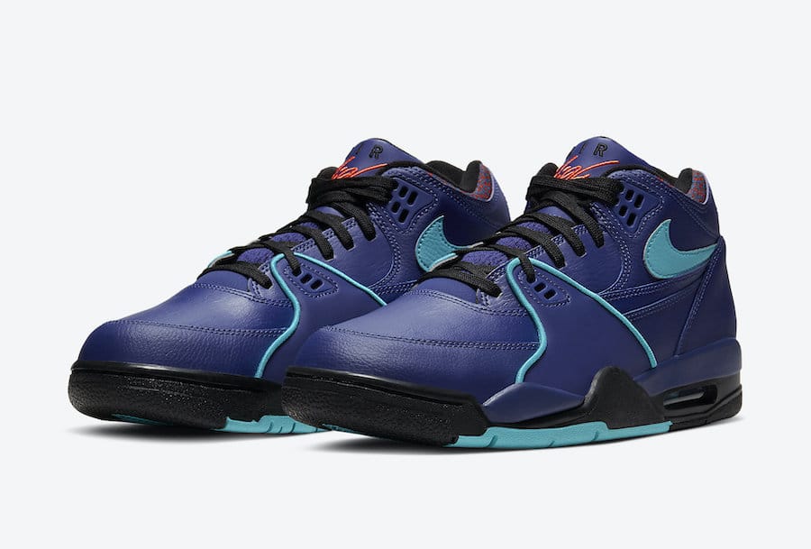 Kompletně celý svršek obuvi je kožený v tmavě fialové barvě s několika překryvy. Obuv zvýrazní loga na obou bocích a lemování prvku ve středu boty, které jsou v tyrkysové barvě. V červené barvě je brandový nápis Air Flight na polstrovaném jazyku, ve které je zároveň brand na patě. Tkaničky a vnitřní část obuvi jsou v barvě černé.