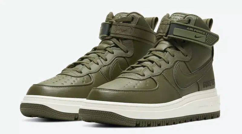 Nike Sportswear je připravena k vydání dalšího oblíbeného modelu Nike Air Force 1 High, který se chystá na letošní sezónu v zajímavé barevné kombinaci. Nová kolekce kotníkové obuvi je v tématu „Medium Olive“, který je v colorway černé, bílé, hnědé a zelené barvy. Obuv je z nepromokavého materiálu Gore-Tex.