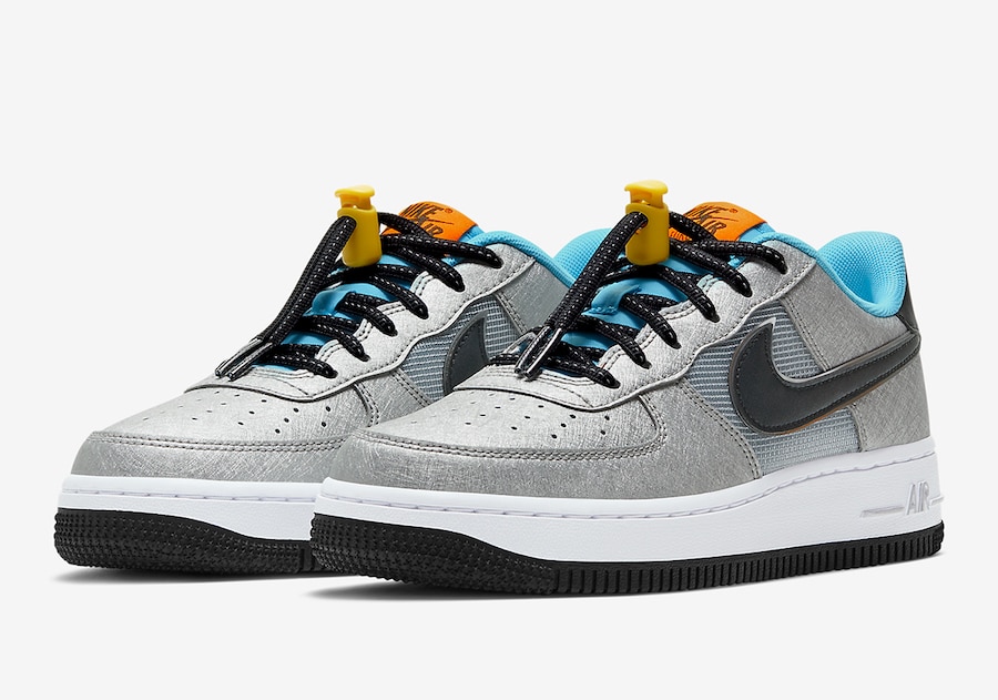 Nike Air Force 1 GS White/Metallic Silver/Black/Light Blue/Orange-Yellow CW6011-001