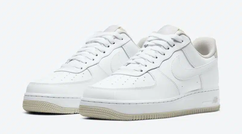 Pohodlná gumová podrážka Air s prošitím je v bílé barvě, kdy zespodu je ve světle béžové barvě. Skvělé nízké tenisky Nike Air Force 1 Low ’07 Light Bone budou k dispozici u vybraných prodejců koncem dubna.