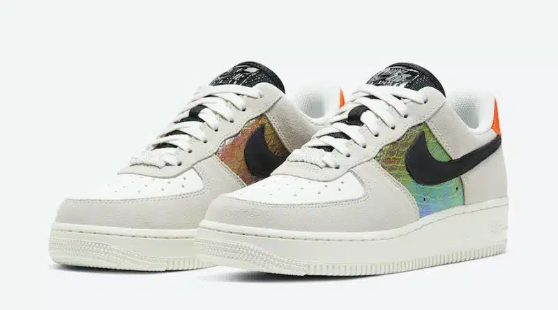 Společnost Nike připravila další model pro sezónu jaro léto řady Air Force 1 Low, který bude vydaný pod názvem „Iridescent Snakeskin“. Nová kolekce nízkých tenisek bude v zajímavé colorway bílé, světle šedé, černé, oranžové, modré a zelené. Modrá a zelená je v duhovém efektu, který je v motivu hadí kůže.
