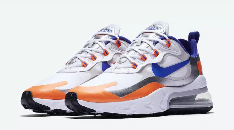 Společnost Nike připravila další skvělou kolekci tenisek Air Max 270 React, která je v motivu „Royal Blue Swoosh“. Nová kolekce je v jasných a výrazných barvách, kterými jsou bílá, černá, stříbrná, oranžová a královsky modrá.