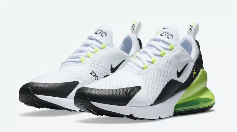 Pohodlná pěnová podrážka s jednotkou Max Air 270, která poskytuje bezkonkurenční celodenní pohodlí je v bílé a zelené barvě. Sportovní tenisky Nike Air Max 270 White Black budou k dispozici u vybraných prodejců během července.