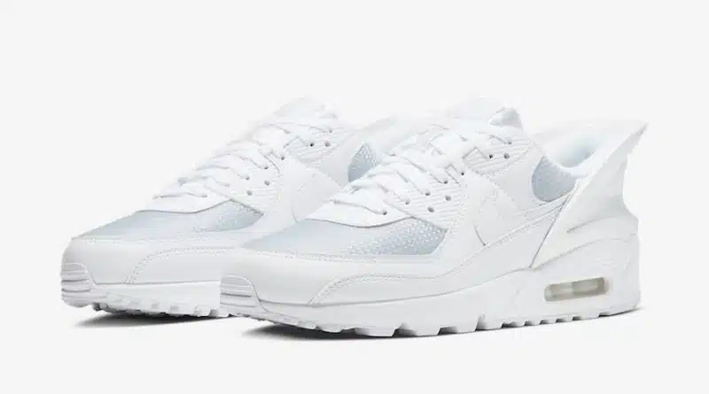Pohodlná odpružená podrážka je v bílé barvě a jednotka Air Max je v barvě bílé. Zespodu je gumová podešev v bílé barvě. Sportovní tenisky Nike Air Max 90 FlyEase Triple White budou k dispozici u vybraných prodejců během května.
