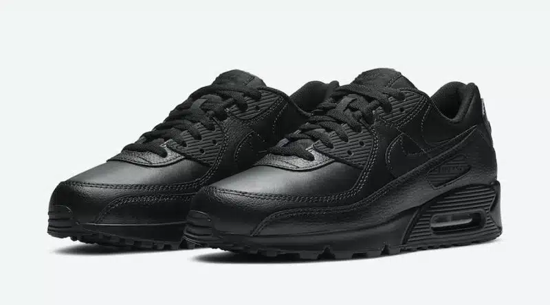 Pohodlná odpružená podrážka je v černé barvě a jednotka Air Max je v černé barvě. Oblíbené nízké tenisky Nike Air Max 90 Leather Triple Black budou k dispozici u vybraných prodejců během června.