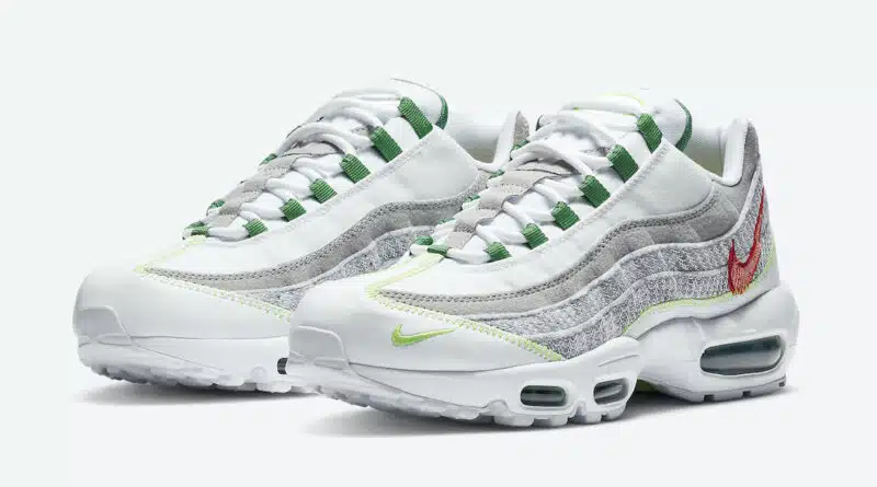 Pro letošní sezónu společnost Nike připravila další skvělou kolekci Nike Air Max 95, která je v zajímavé barevné kombinaci. Tento model je částečně vyrobený z recyklovaných materiálů. Nová kolekce sportovní obuvi bude vydaná v designovém tématu „White Electric Green“, který je v colorway šedé, červené, bílé a zelené barvy.