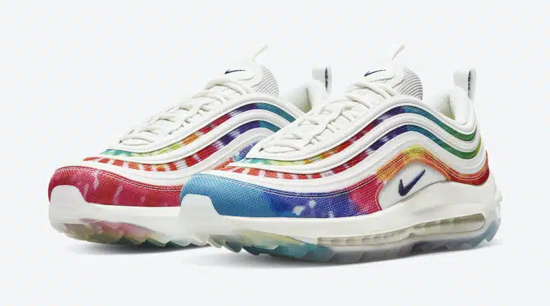 Nejnovější kolekce oblíbeného modelu Nike Air Max 97 je připravena pro letní sezónu v designovém tématu „Tie Dye“. Kolekce golfové obuvi je v barevné kombinaci bílé, modré, zelené, červené a žluté barvy.