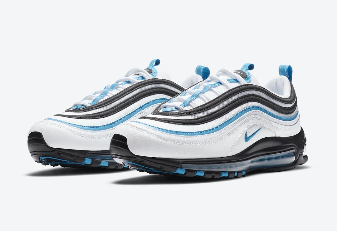Nejnovější kolekce oblíbeného modelu Nike Air Max 97 je připravena pro letní sezónu v designovém tématu „Laser Blue“. Kolekce nízkých tenisek je v barevné kombinaci bílé, černé a světle modré barvy.