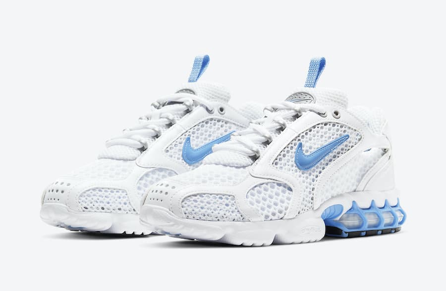 Společnost Nike připravuje vydání další kolekce modelu Air Zoom Spiridon Cage 2, která se brzy objeví a bude v barevném tématu „University Blue“. Nová kolekce tenisek je v kombinaci barev světle modré University Blue, stříbrné a bílé.