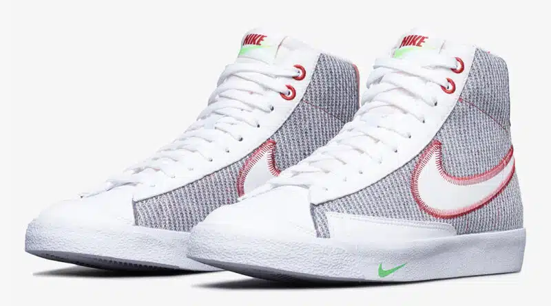 Popularita oblíbeného modelu kotníkové boty Nike Blazer Mid neustále roste, proto společnost Nike chystá vydání další zajímavé colorway. Nová kolekce kotníkové obuvi bude vydána v tématu „Recycled Jerseys“, který je v barevné kombinaci červené, zelené, bílé a šedé barvy.