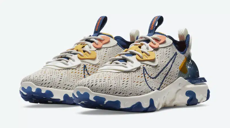 Je připravena další zbrusu nová colorway zavedené řady Nike React Vision, která bude vydána v designovém tématu „Light Orewood Brown“. Nová kolekce bude v zajímavé barevné kombinaci světlých barev bílé, krémové, žluté, růžové, oranžové a modré. Design obuvi je součástí nové řady Nike D/MS/X.