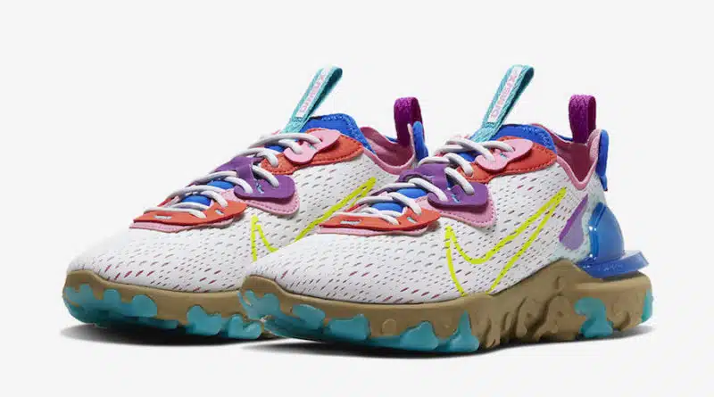 Je připravena další zbrusu nová colorway zavedené řady Nike React Vision, která bude vydána v designovém tématu „Photon Dust“. Nová kolekce bude v zajímavé barevné kombinaci výrazných barev bílé, růžové, žluté, fialové a modré. Design obuvi je součástí nové řady Nike D/MS/X.