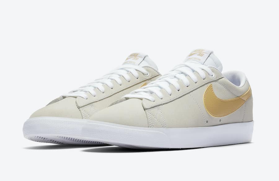 Nike Skateboarding pokračuje ve vydávání nových jarních kolekcí svého oblíbeného modelu SB Blazer Low. Nová kolekce nízkých tenisek bude vydána v decentním motivu „Golden Yellow Swoosh“, která je v barevné kombinaci světlé šedé a žluto zlaté barvy.